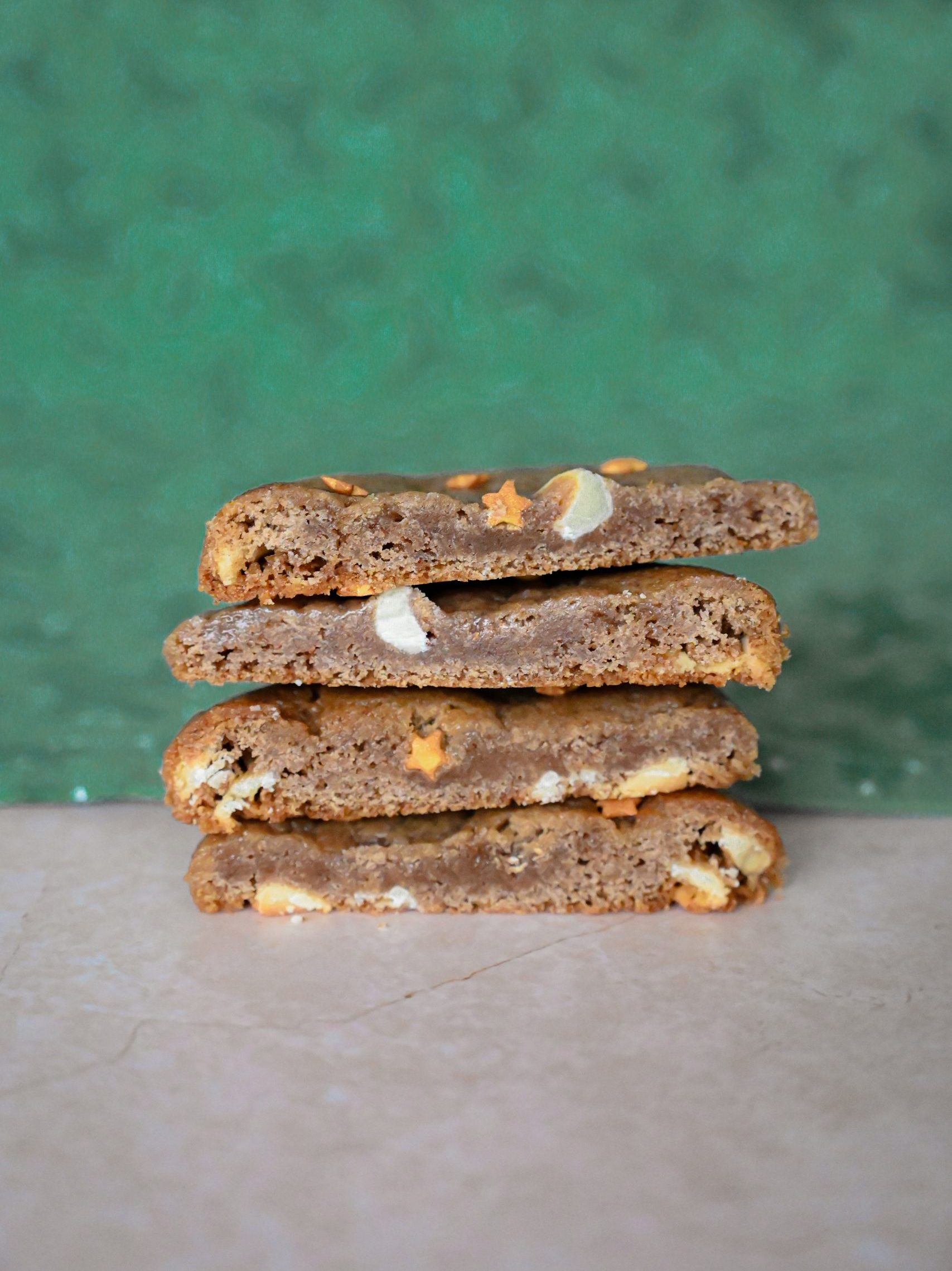 Callebaut chocolade, gingerbread kruiden en niet te vergeten de feestelijke glitters maken deze Lot’s of Cookies koek een ware kerstkoek! Zoet, maar zeker het proeven waard.
