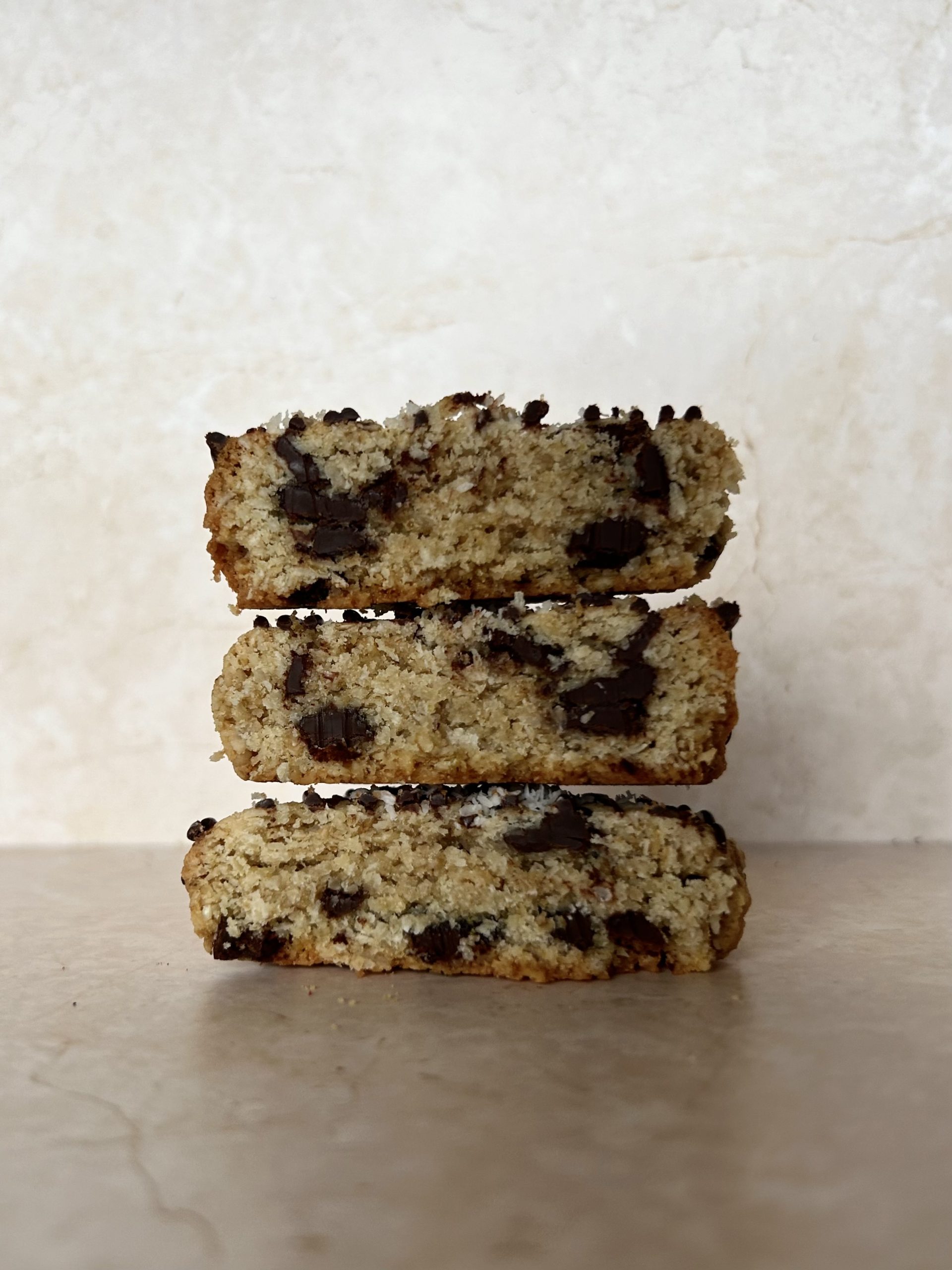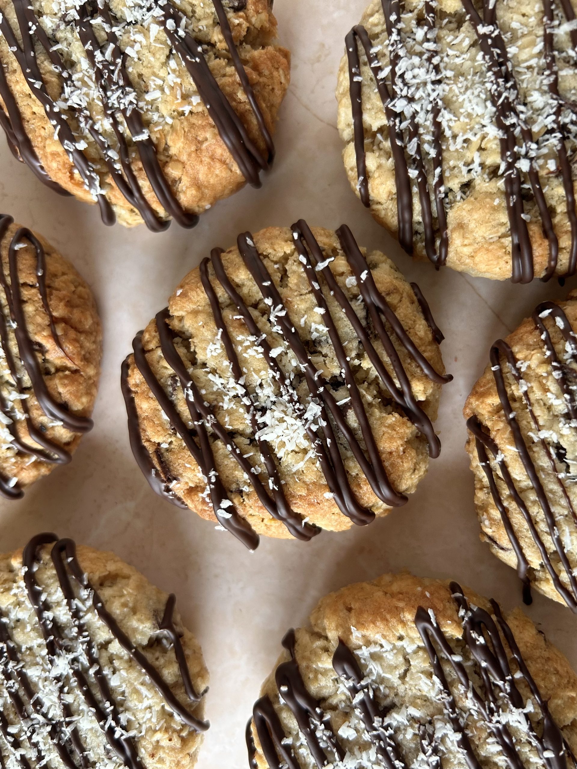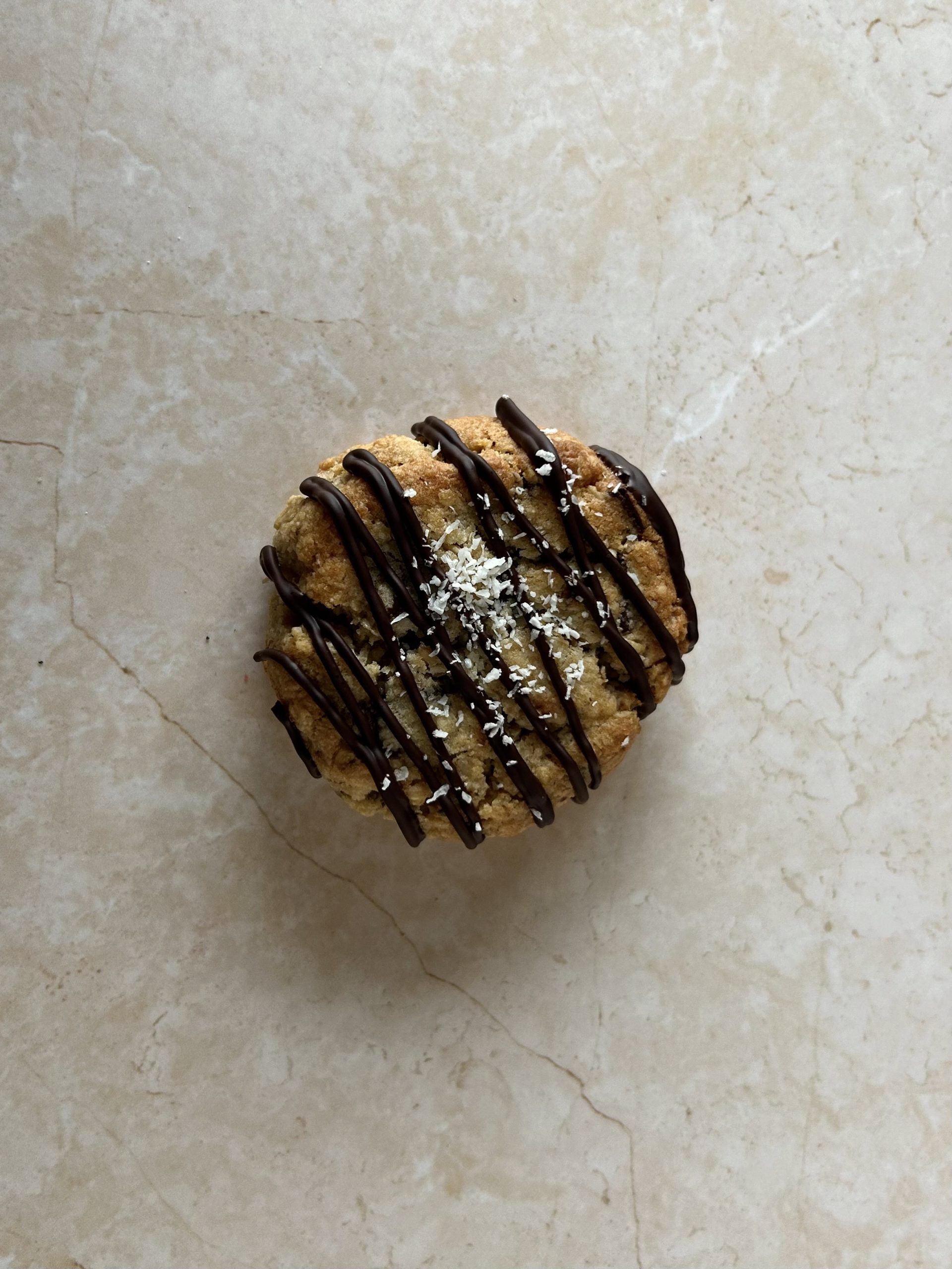 Deze koek is met de helft van de suiker gemaakt t.o.v. de andere cookies. Een chocolate chip cookie met pure chocolade stukken, kokos en havermout. Doordat er havermout en kokos door het deeg zit heeft deze koek een andere structuur, maar dat maakt hem alles behalve minder lekker!