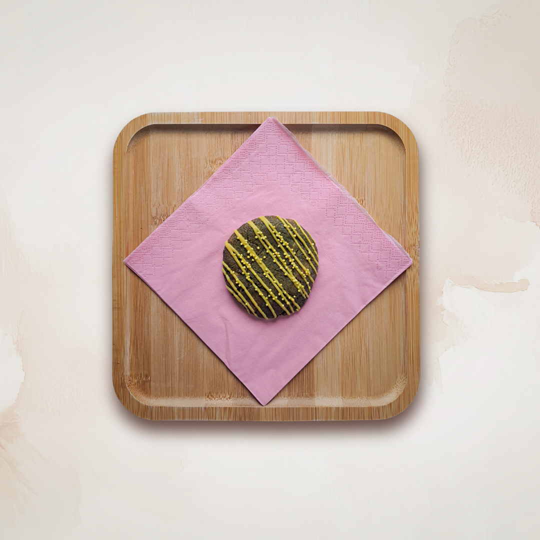 Ingrediënten: tarwebloem, roomboter, ei, suiker, vanille-extract, matcha, zout, chocolade.